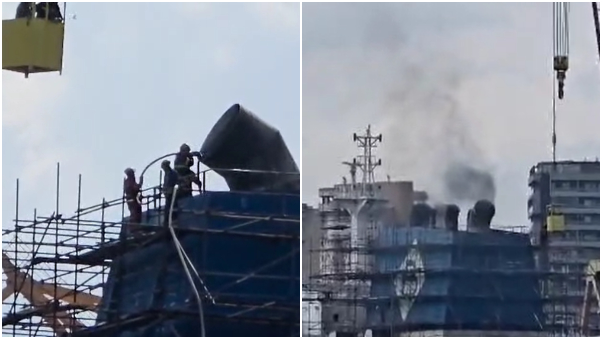 Explozia urmată de incendiu pe puntea superioară a unei nave aflate în reparaţii, pe Șantierul Naval din Constanța.