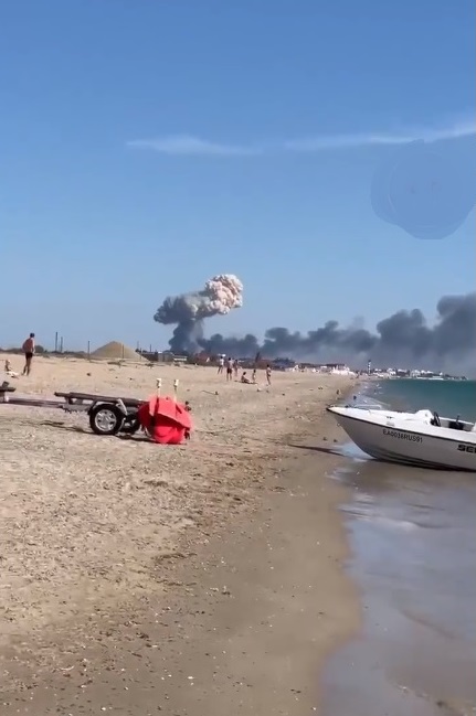 Cel puţin 12 explozii au fost auzite în decurs de un minut, marți în jurul orei locale 12:30, la o bază aeriană rusească din peninsula Crimeea. Ministerul rus al Apărării susţine că nu a fost un atac ucrainean, ci doar o explozie de muniţii.