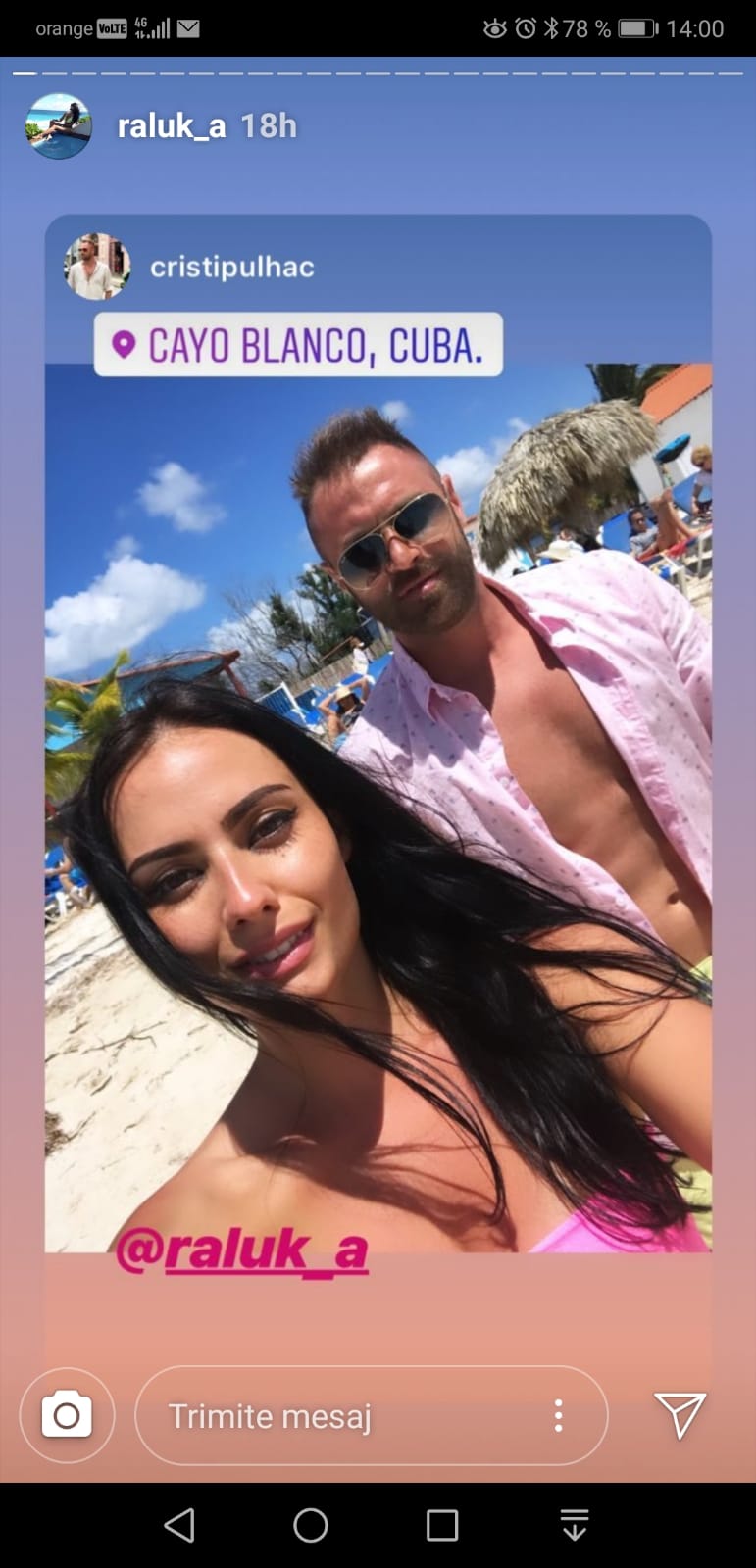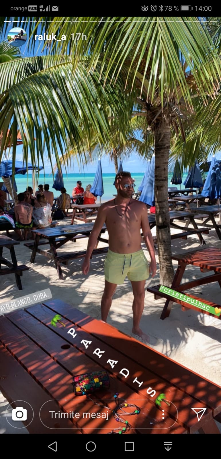 ”Am plecat în Cuba, cu Raluca, să ne facem de cap. Voiam să mergem undeva unde sunt plaje ca în Republica Dominicană, să ne relaxăm, să ne revenim. E ca o lună de miere, Cuba este extraordinară pentru turiști. Peisajele sunt absolut fabulopase, ai toate condițiile să de distrezi de minune, iar plajele, nisipul și apa sunt așa cum îmi imaginez eu Raiul. Dansăm fără oprire, ei sunt un popor vesel și ne simțim extraordinar”, ne-a spus, în exclusivitate, Cristi Pulhac, Faimosul care a făcut senzație înc el de-al doilea sezon al Exatlon România.