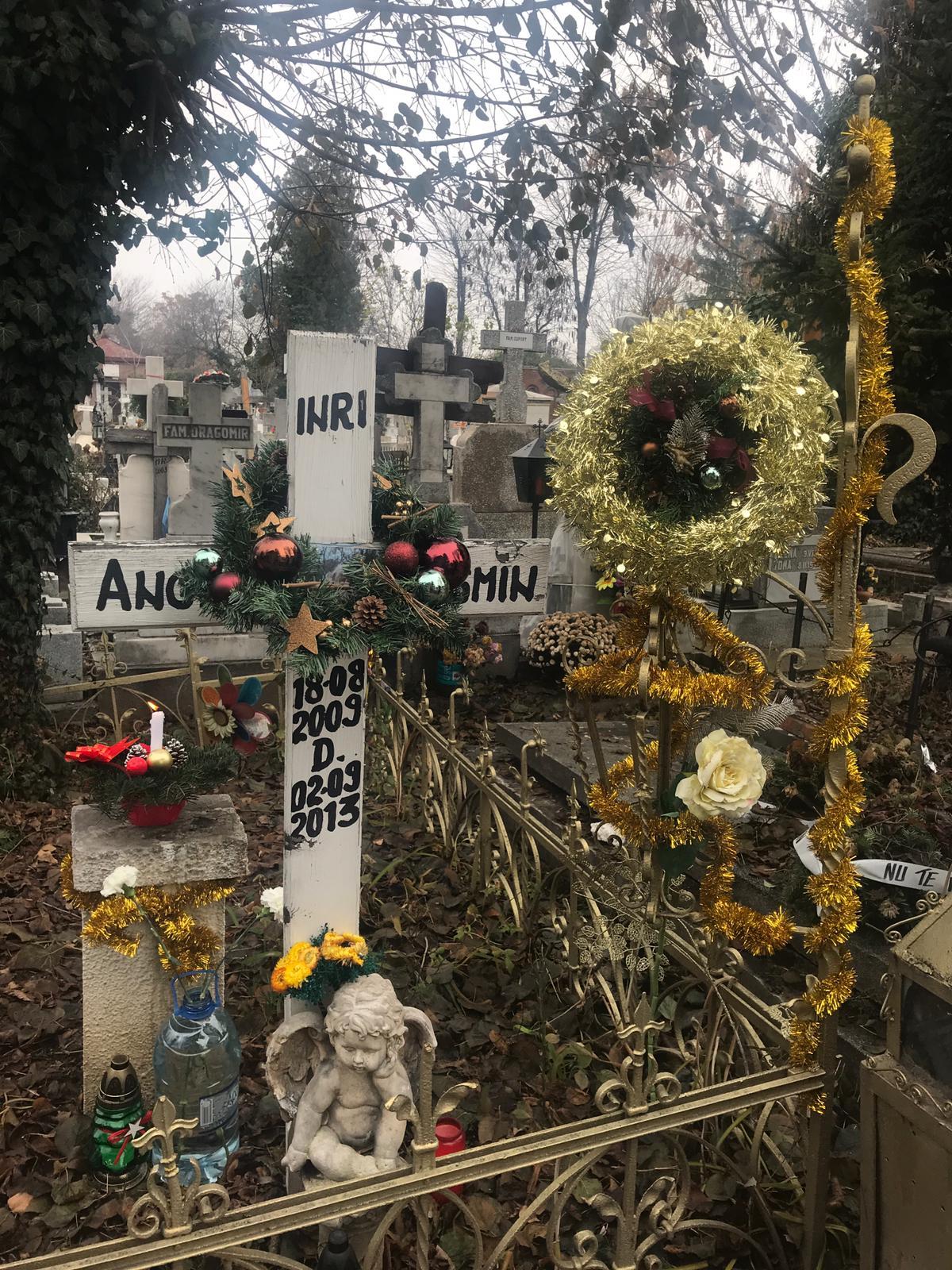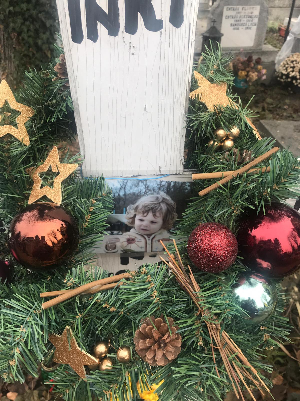 Beteală galbenă, globuleţe galbene şi coroniţe din brad frumos împodobite. Ca în fiecare iarnă, familia Anghel a avut grijă să împodobească mormântul lui Ionuţ, băieţelul care a fost ucis de maidanezi, în 2013, pe un teren viran din Parcul Tei din Capitală.
