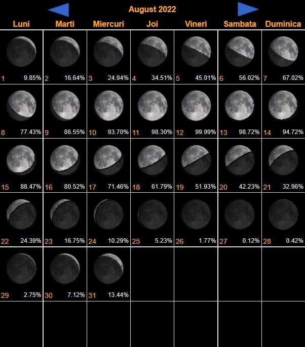 Fazele lunii august 2022