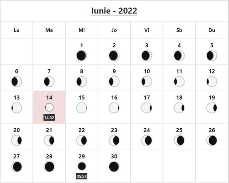 În luna următoare, luna plină se va forma la data de 14 iunie.