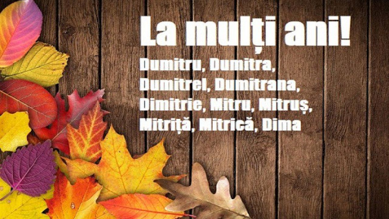 La mulți ani de Sfântul Dumitru!La mulți ani, Dumitru! Iți urez ca ziua ta onomastica sa iți aducă o raza de soare, sa ai inima plina de speranța iar in lume sa găsești numai fericire. La Mulți Ani, Dumitru!