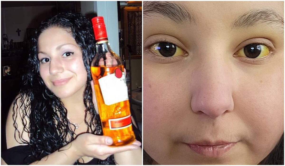 O mamă care a devenit dependentă de alcool fără să își dea seama cum a fost șoccată când alcoolismul ei i-a făcut ochii să se îngălbenească.