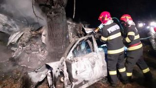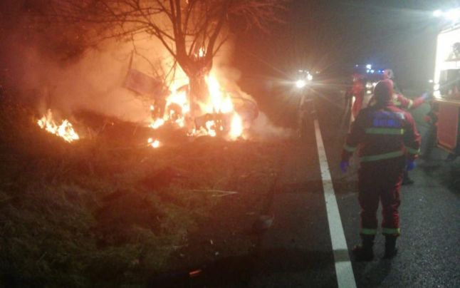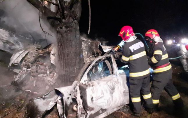 VIDEO | O femeie de 30 de ani a ars de vie în mașina proprie, după ce s-a lovit de un copac