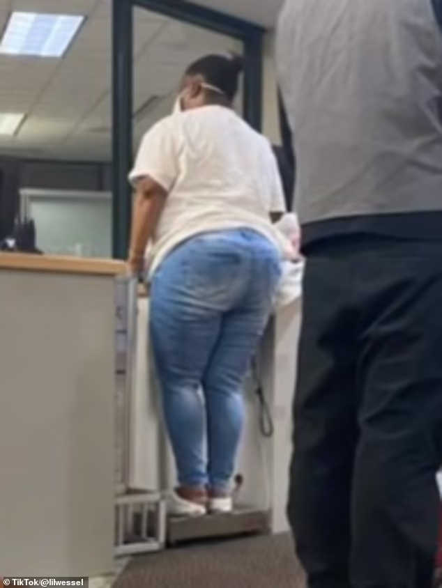 Lillian a împărtășit o fotografie cu femeia, care nu a fost identificată, în timp ce s-a urcat pe cântarul de bagaje, în văzul tuturor pasagerilor care așteptau la îmbarcare.
