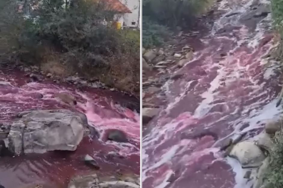 Fenomen bizar în Bistrița-Năsăud! Apa unui râu a devenit roșie în mod inexplicabil