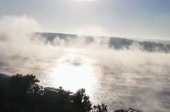 Valul de frig a facut ca Dunarea sa dea in clocot! Deasupra fluviului s-au ridicat, astazi, nori grosi de abur si au dat senzatia trecatorilor ca apa fierbe.