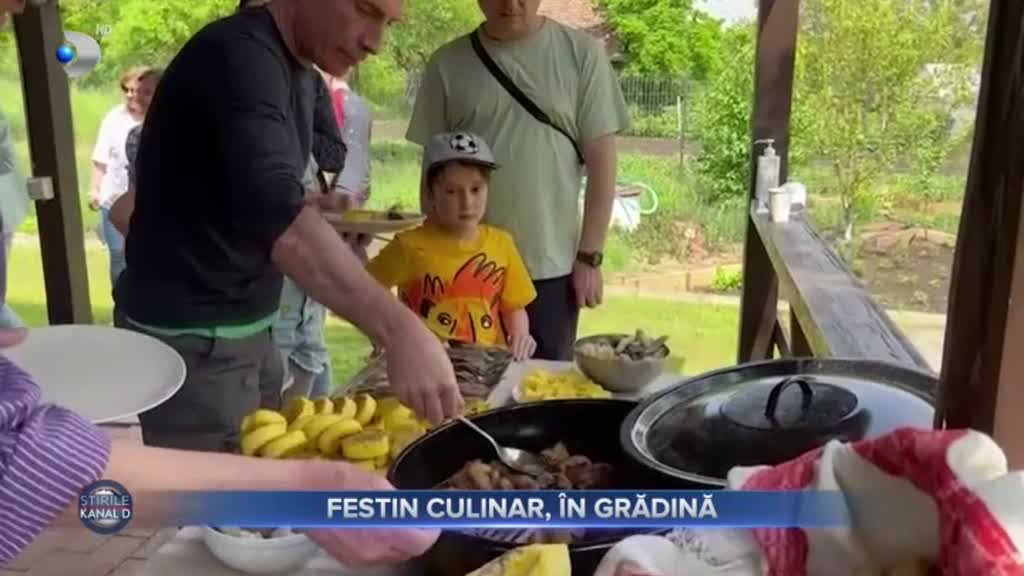 Gospodinele au întins mesele în grădină și le-au umplut cu fel de fel de bunități. Așa că oaspeții s-au bucurat de un adevărat festin.