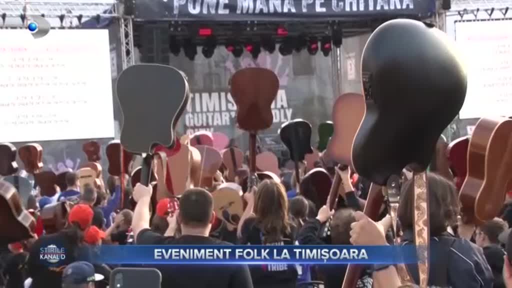 Centrul orașului Timișoara a răsunat, aseară, de muzică folk și rock. Sute de chitariști adunați din toate colțurile țării au cântat la unison în cadrul festivalului "Întâlnirea Chitarelor", un program dezvoltat în urmă cu ceva timp în Sibiu, care s-a extins acum și în vestul țării.