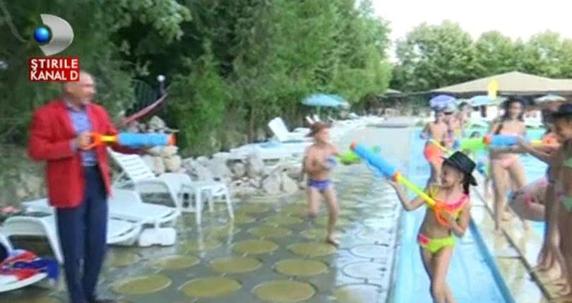 O petrecere ca-n Texas! Înarmaţi cu pistoale cu apă şi accesorizaţi cu pălării ca-n Vestul sălbatic, mai mulţi prichindei petrec la ceas de seară, în cinstea unei mici vedete.