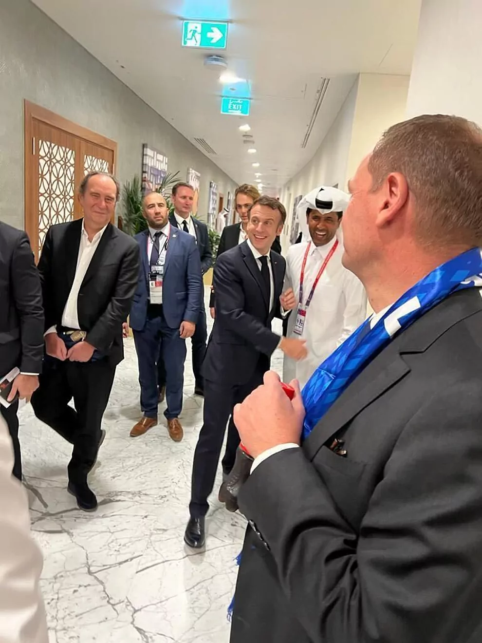 Cupa Mondială din Qatar 2022. Au fost intonate imnurile naționale ale celor două naționale și echipele sunt gata de start. Se joacă cu Cupa pe masă: