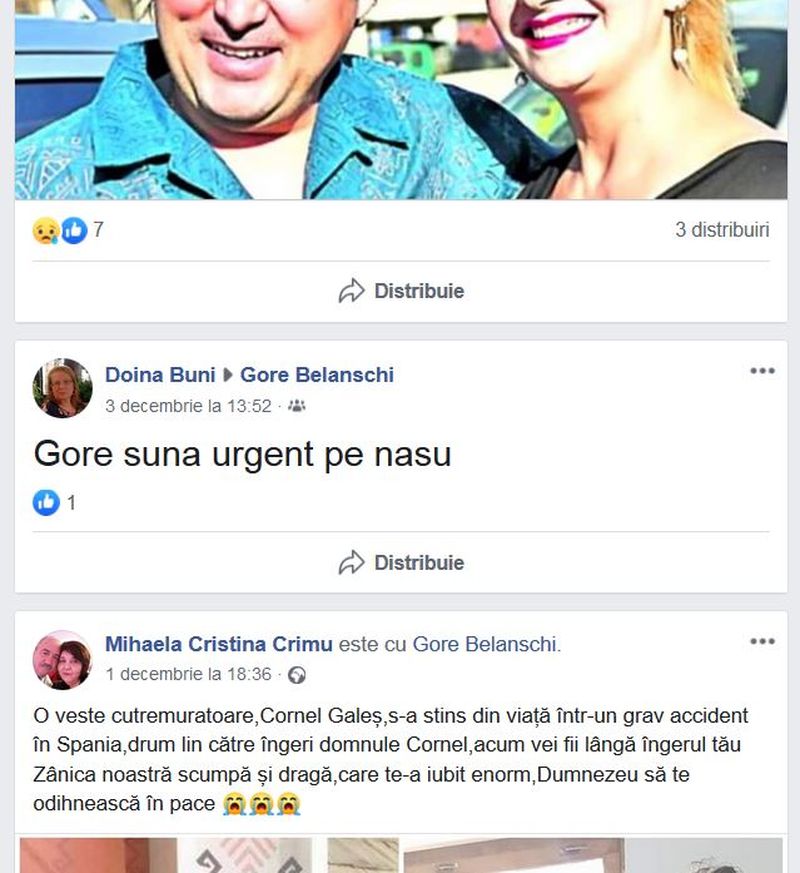 Interpretul Gore Belanschi este finul familei Galeș, respectiv al lui Cornel și al Ilenei Ciuculete, ambii trecuți în neființă. Acesta a primit zeci de mesaje de condoleanțe, începând cu 1 decembrie, ziua morții lui Galeș. Printre acestea se găsește și unul destul de ciudat, ținând cont că a fost postat la două zile după ce toată lumea aflase despre moartea ”văduvului”.