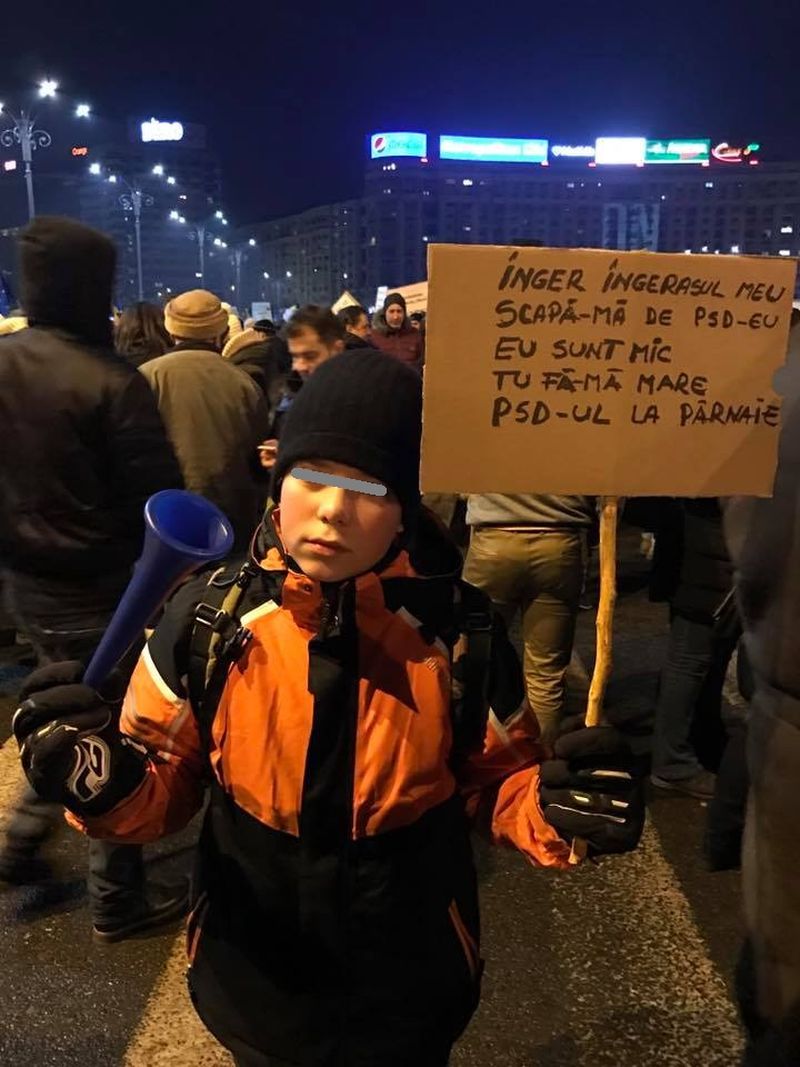 2 din 3 | Fiul fostului pilot Adrian Iovan s-a aflat printre protestatarii din Piata Victoriei! Albert a infruntat gerul alaturi de mama sa, Romanita!