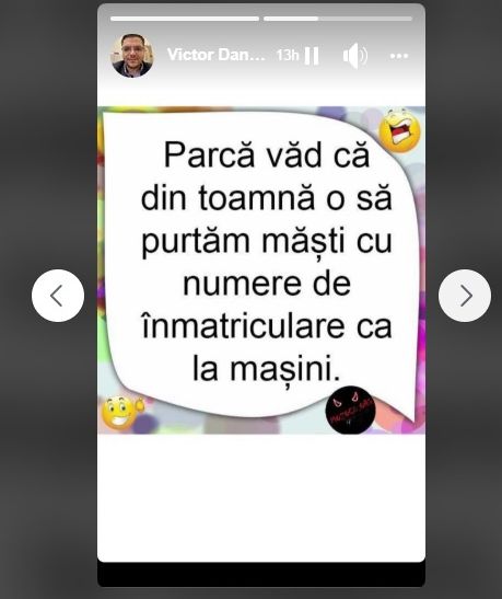 Fiul Vioricăi Dăncilă s-a săturat să poarte mască, după cum reiese dintr-o postare recentă a lui Victor. “Parcă văd că din toamnă o să purtăm măști cu numere de înmatriculare ca la mașini”, a scris Victor Dăncilă, care este consilier la Curtea de Conturi. El a divorțat anul trecut de soția sa, Elena, după o căsnicie de trei ani.( vezi cum a rămas fără bani fosta soție a lui Liviu Dragnea)