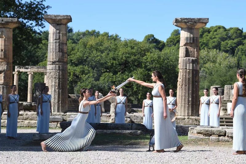 Astăzi, flacăra a fost aprinsă pe stadionul antic din Olympia, din peninsula Peloponez şi va fi predată organizatorilor chinezi a doua zi, pe stadionul Panathenaic din Atena, după ce va arde o noapte lângă Acropole.