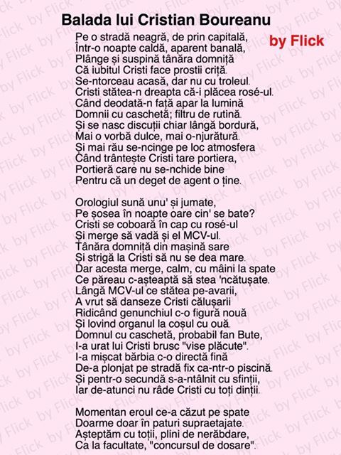 Flick a scris "Balada lui Cristian Boureanu": "Langa MCV-ul ce statea pe avarii, a vrut sa danseze Cristi calusarii"