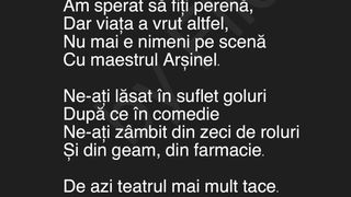 1 din 2 | Flick, alias "Domnul Rima", a facut o poezie impresionanta pentru Stela Popescu la doar cateva ore dupa moartea artistei - "De azi teatrul mai mult tace, odihniti-va in pace!"