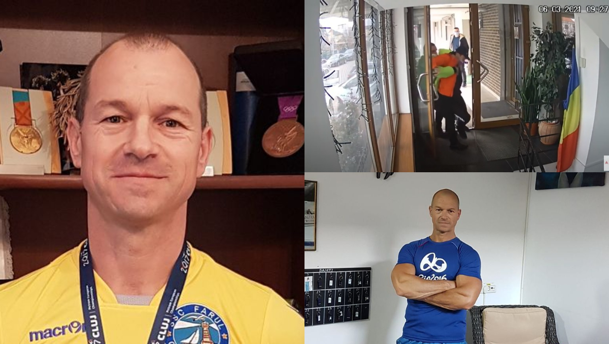 Imaginile surprinse la acea vreme îl arată pe tatăl Cătălinei Ponor în compania a doi polițiști locali chiar în fața sălii de sport pe care o deține în Constanța.