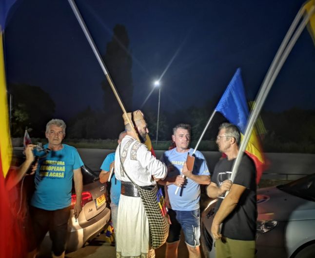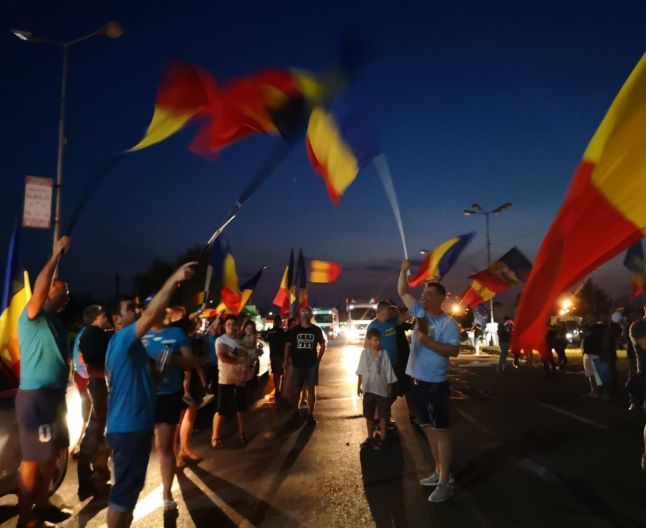 Primele coloane de masini cu romani din Diaspora au intrat in tara dupa ora 21:30. Acestea au fost intampinate de zeci de protestatari, care au pregatit un arsenal format steaguri si mesaje anti-PSD. Romanii veniti din Grecia, Marea Britanie sau Italia au venit cu masinile inscriptionate cu lozinci anti-PSD si cu steaguri. Acestia s-au alaturat oradenilor si au scandat pret de cateva zeci de minute mesaje anti-PSD. „Romania, uneste-te”, „PSD, ciuma rosie”, „Nu ne vindem tara”, „Jos coruptia”, „Justitie, nu coruptie”, au fost doar cateva dintre scandarile auzite.