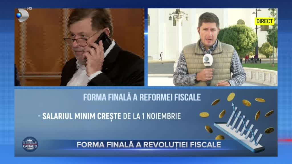 Guvernul a stabilit forma finală a aşa zisei revoluţii fiscale: salariul minim nu va crește de la 1 octombrie, așa cum era plănuit, ci de la 1 noiembrie. TVA-ul va rămâne același de 9% pentru alimente și medicamente și de 5% pentru gaze, energie și lemne de foc.