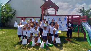 Incarcati cu multe cadouri, fostii concurenti „Exatlon” au fost luati cu asalt de cei peste 20 de copii si timp de cateva ore au improvizat trasee si au povestit despre Republica Dominicana.