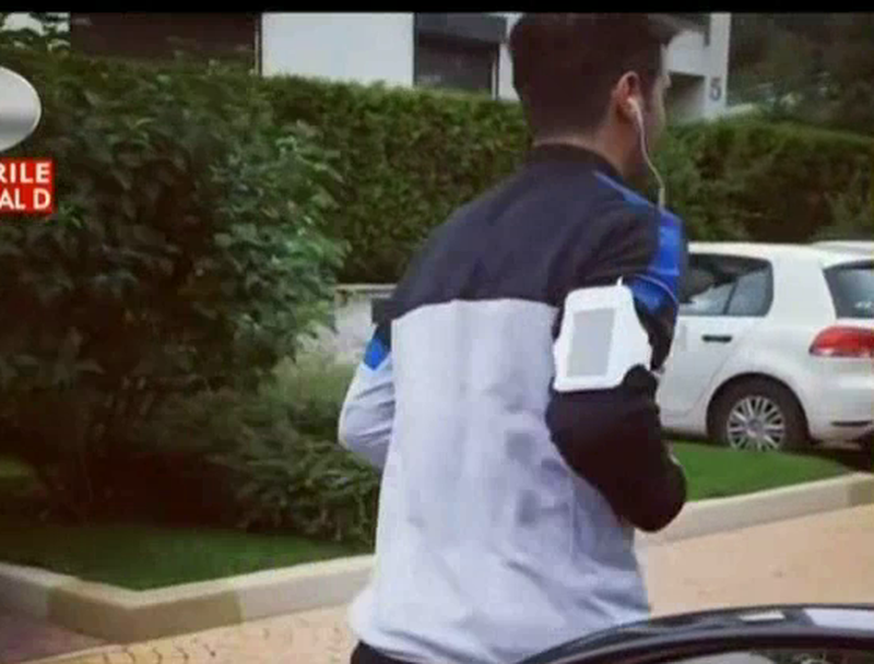 Frumoasa bruneta il pune pe Cristi Chivu sa alerge.....pe langa masina. Cristi se conformeaza si parca nici nu scranteste in fata frumoasei sale sotii. Cu castile in urechi si cu un aparat special pe brat care ii masoara ritmul.....
