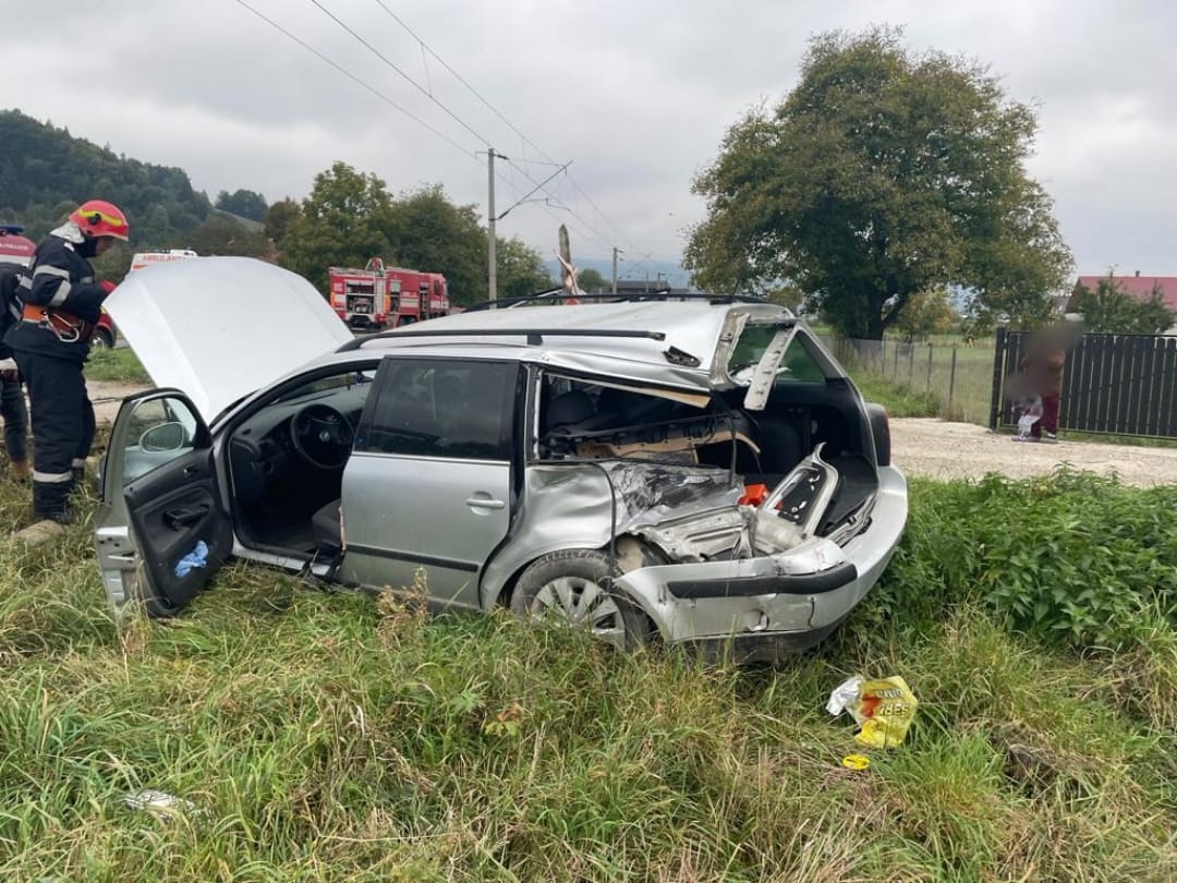 1 din 3 | FOTO| Accident grav în Suceava: Un autoturism a fost lovit de tren