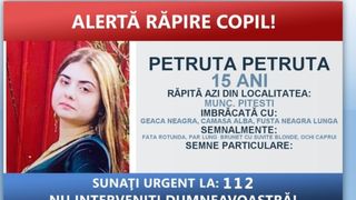 „ La data de 28 aprilie a.c., în jurul orei 11.00, Poliţia Municipiului Piteşti a fost sesizată cu privire la răpirea unei minore, de 15 ani, MUSTAŢĂ PETRUŢA, din Piteşti, judeţul Argeş. Din cercetări a reieşit că minora, în timp ce se afla în parcarea blocului S 5, din municipiul Piteşti, b-dul Nicolae Bălcescu, a fost luată cu forţa de trei persoane necunoscute şi introdusă într-un autoturism, de culoare gri, marca Volkswagen Sharan, cu