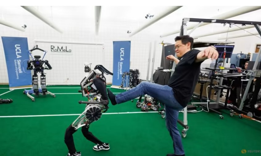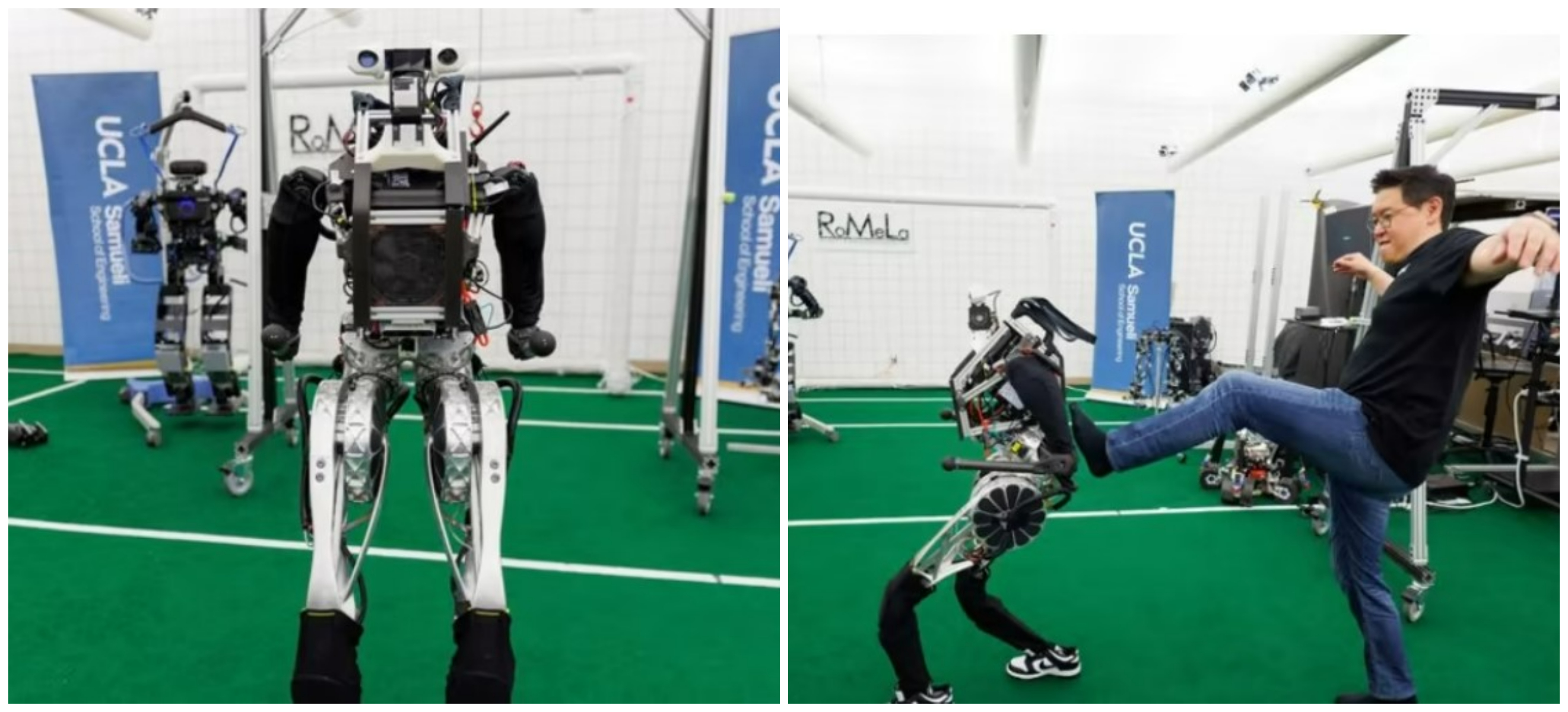 Inginerii unei Universități din California au dezvoltat un robot care joacă fotbal.