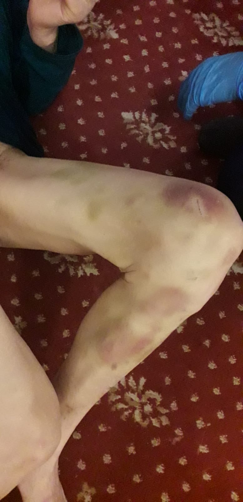 3 din 3 | Bărbatul prezintă vânătăi pe aproape toată suprafața corpului.