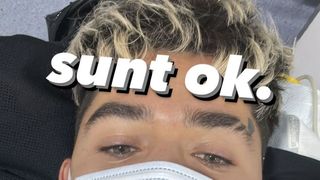 În imagine se vede că artistul are la gât un guler cervical.”Sunt ok.” a scris Lino în dreptul imaginii.