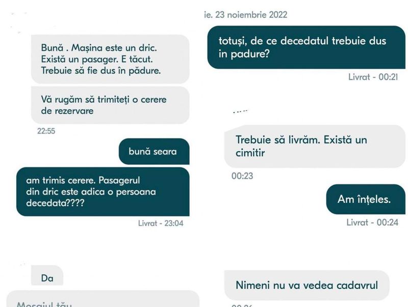 De parcă informațiile nu erau suficient de înfricoșătoare, șoferița a mai informat-o pe clientă că urmează ca omul decedat să fie lăsat într-o pădure, la un cimitir, conform dorințelor familiei acestuia.
