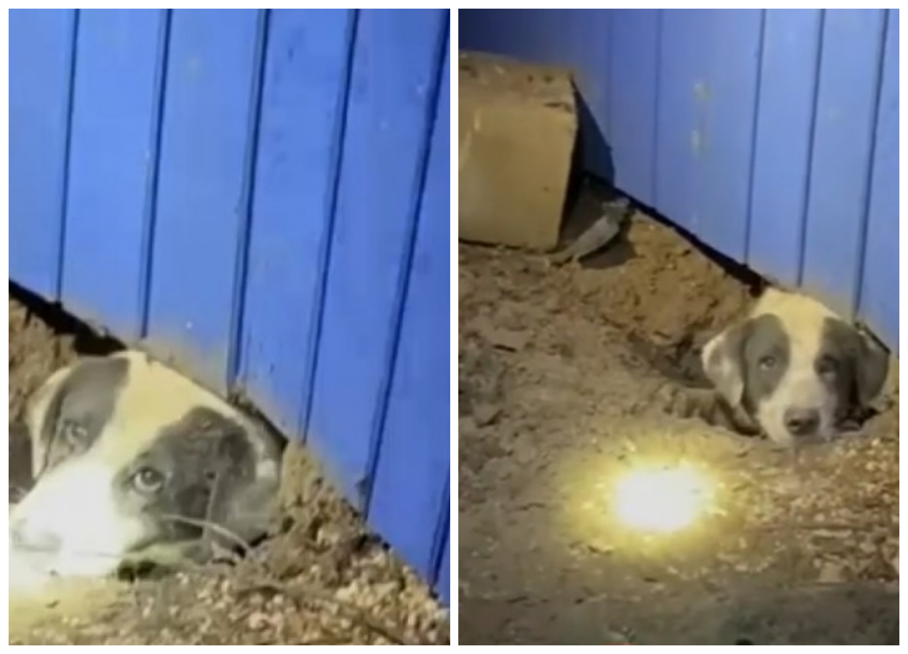 Scâncetele disperate ale animalului se auzeau de sub ruinele unei case, aproape de zona în care jurnaliştii se pregăteau să filmeze. Tehnicianul de sunet a luat imediat o lopată şi a început să sape. În doar câteva minute, a reuşit să-l scoată la lumină.