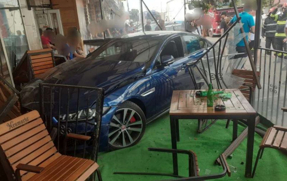 Un șofer din Vrancea a intrat cu mașina pe terasa unui bar