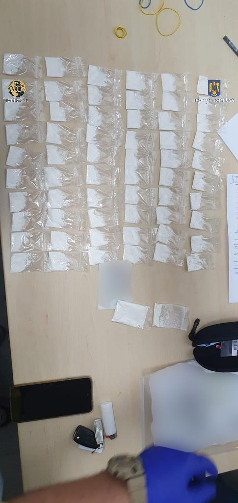 „În urma activităților specifice desfășurate, de la bărbatul în vârstă de 38 de ani au mai fost ridicate, inițial, 7 plicuri cu astfel de substanță și, ulterior, din autoturismul utilizat de acesta, 62 de plicuri din material plastic, cu închidere tip ziplock, în interiorul cărora se afla o substanță pulverulentă, albă, un telefon mobil și 4.150 de lei”, potrivit IPJ Cluj.