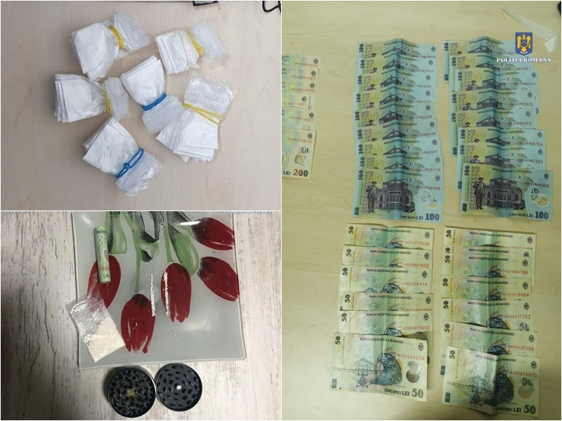 De asemenea, au fost ridicate o bancnotă de 1 leu răsucită, un grinder în care se aflau urme de substanță vegetală de culoare verde-oliv, un recipient metalic în care se afla o țigară confecționată artizanal și substanță vegetală sub formă de muguri (aproximativ 1 gram), 1 farfurie pe care se afla substanță pulverulentă, albă (aproximativ 1 gram) și un card de porționat, o folie de plastic în care se afla substanță pulverulentă, albă (aproximativ 0,5 grame), un telefon mobil și 4.000 de lei”, au informat reprezentanții IPJ Cluj prin intermediul unui comunicat.