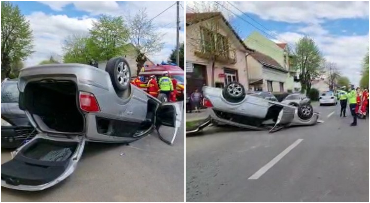 Accident grav în Satu Mare. O șoferiță în vârstă de 45 de ani a lovit o mașină și apoi s-a răsturnat cu autoturismul și s-a oprit într-un al treilea vehicul. În mașină se afla un copil de doar 10 ani.