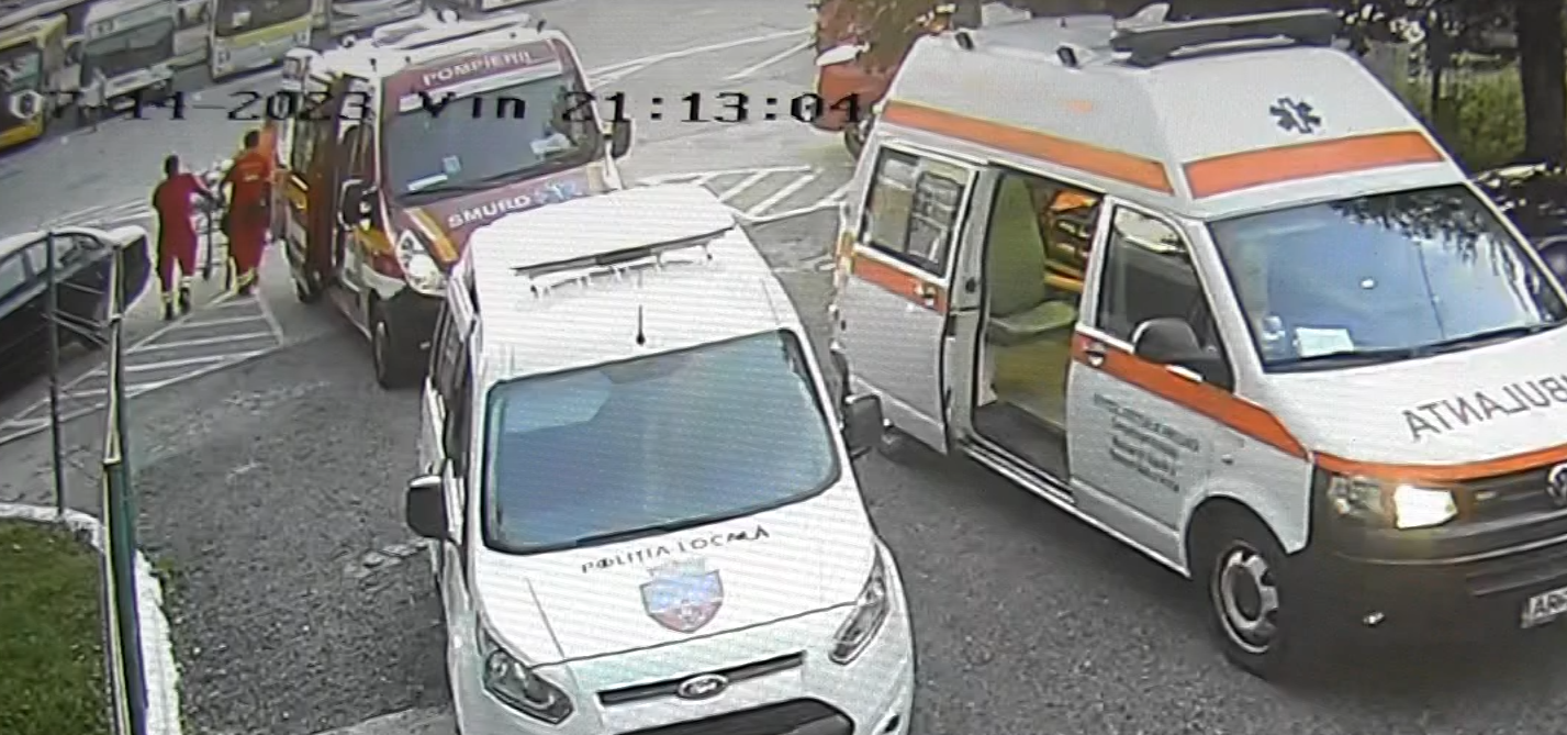 Pe imaginile surprinse pe camerele de supraveghere se observă cum victima este scoasă din sediul poliției locale și transportat la mașina SMRD.