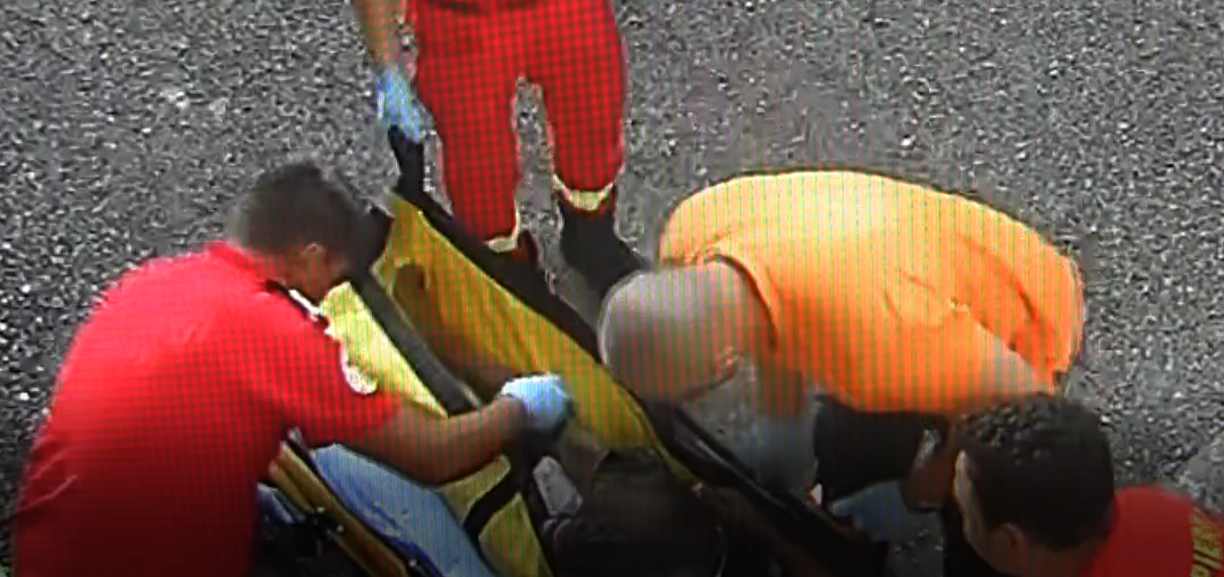 Imaginile îl surprind și pe polițistul bătăuș. Merge întâi, ca teleghidat către mașina în care victimei i se acorda primul ajutor, apoi se îndreaptă către Ambulanță. Potrivit primelor informații, polițistul ar fi fost mușcat de mână de bărbatul pe care l-a bătut până la ucis.