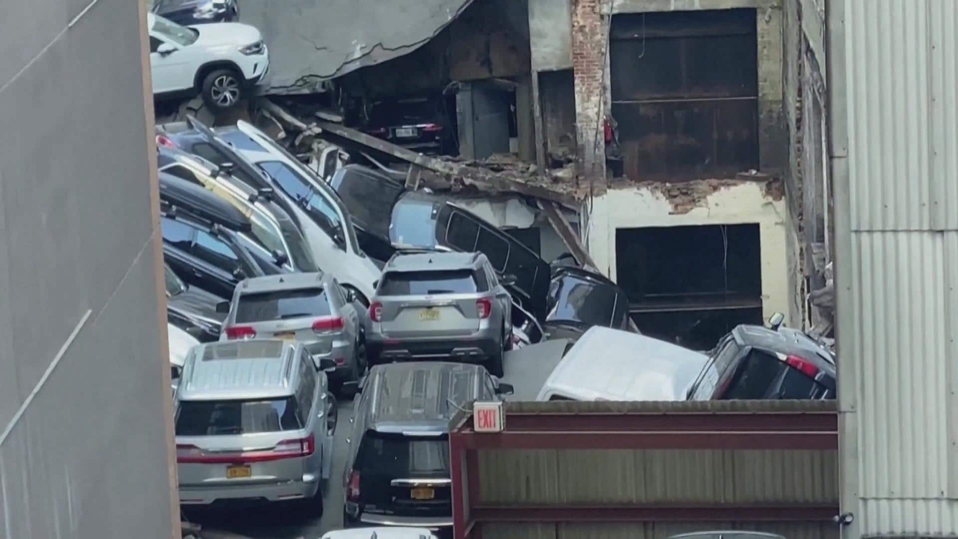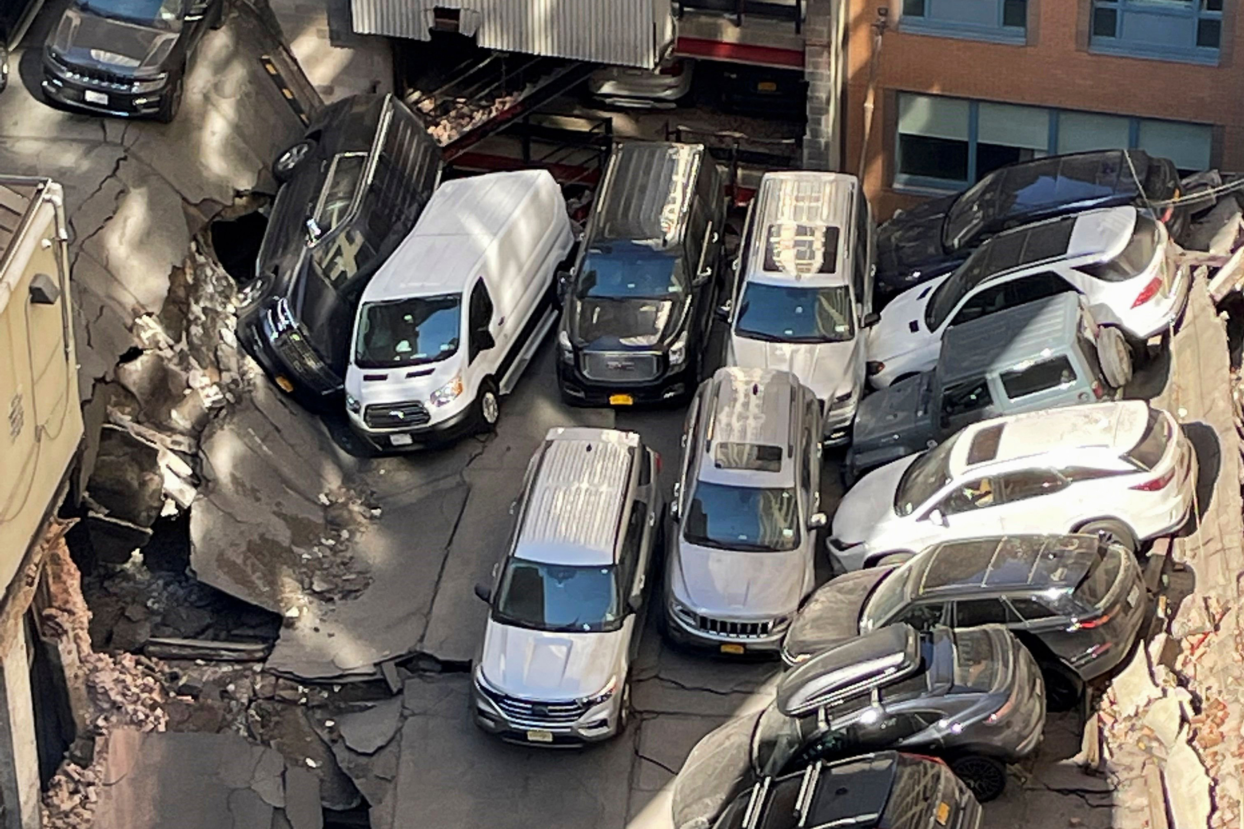 Etajul superior al parcării de pe străzile Ann și Nassau din New York s-a prăbușit în jurul orei 16:10, zdrobind mașini și aruncând SUV-uri într-o scenă terifiantă de distrugere.