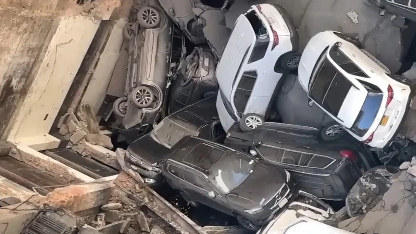 Cele patru etaje ale clădirii cu mașini au căzut unul peste celelalte ca piesele de domino în centrul metropolei americane.