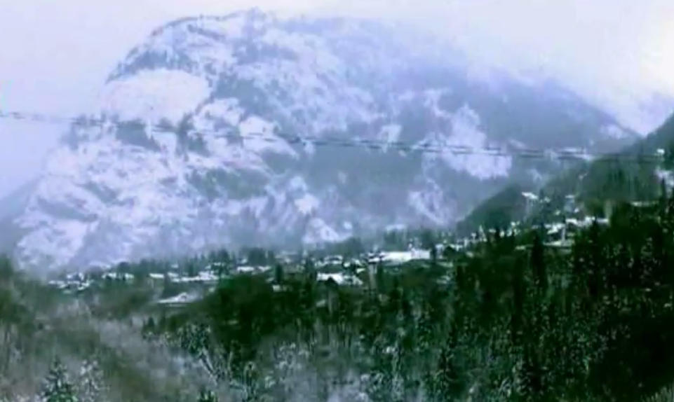 Ce vi se pare in neregula cu aceasta fotografie? Este in mod evident facuta iarna, intr-o zona muntoasa. In stanga se observa cu usurinta stalpii de electricitate. Sa se ascunda ceva printre casele rasfirante in padurea acoperita de chiciura?