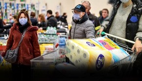 Panicați cu gândul la o criză a alimentelor, mulți se îmbulzesc în loc să evite pe cât posibil locurile aglomerate. Imaginile descriu cel mai bine "vânătoarea" despre care autoritățile spun că este nejustificată.