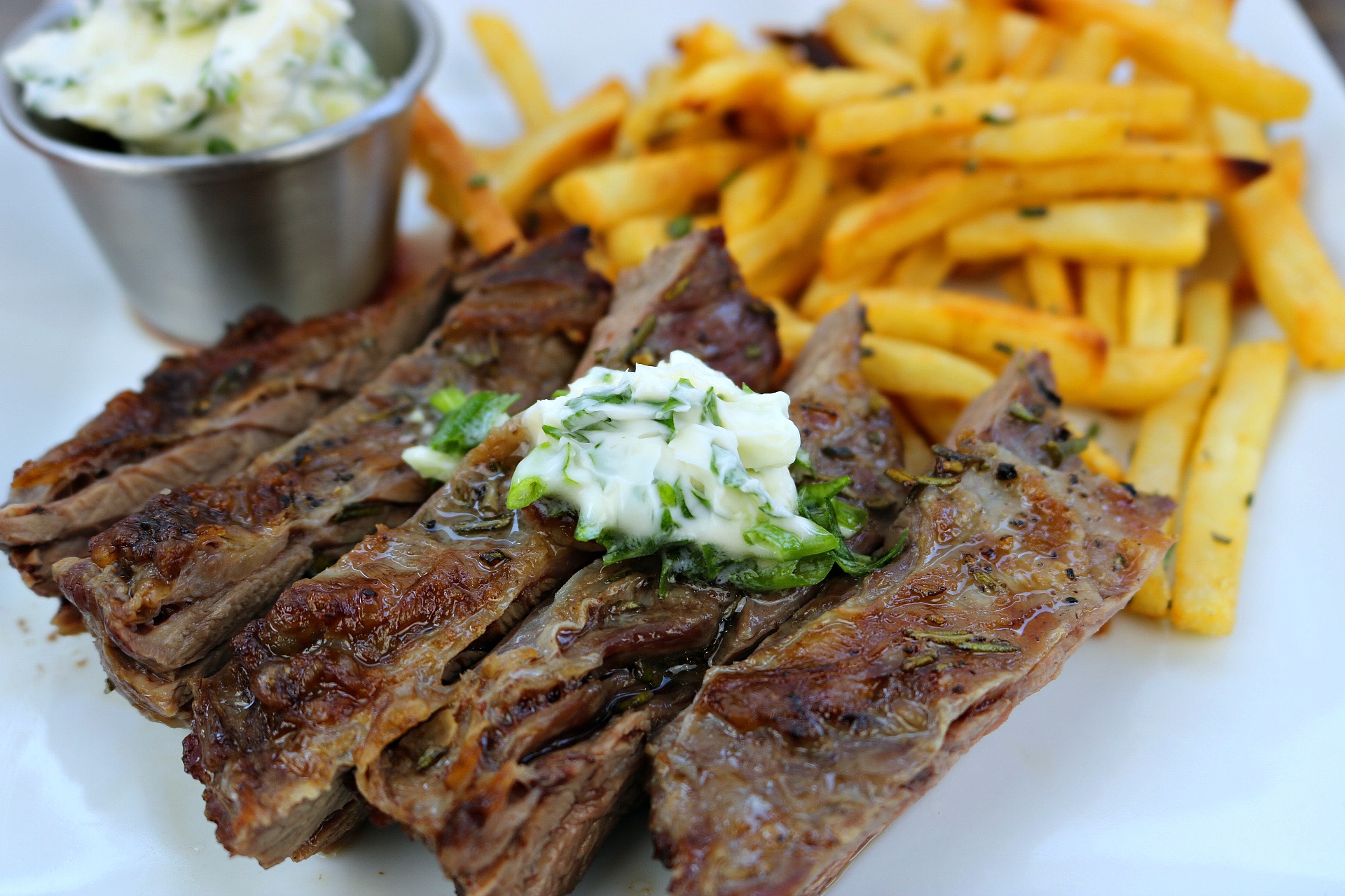 Friptură cu cartofi prăjiţi. Dacă vrei să alegi o garnitură sănătoasă pentru carne, optează pentru sparanghel, broccoli, conopidă, fasole verde sau dovlecei.