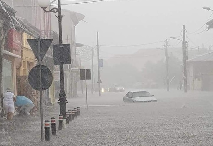 Furtuna si ploia abundenta au facut ravagii in Giurgiu. Strazile s-au transformat in rauri, iar statia de pompare a fost avariata.