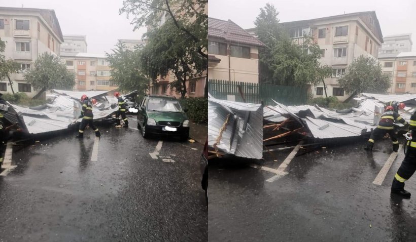 Este cod portocaliu de ploi torențiale, grindină și vijelii în mai multe județe din țară. Pompierii din Vrancea au transmis că în cursul acestei seri un acoperiș a fost smuls de vântul puternic și a avariat două mașini.