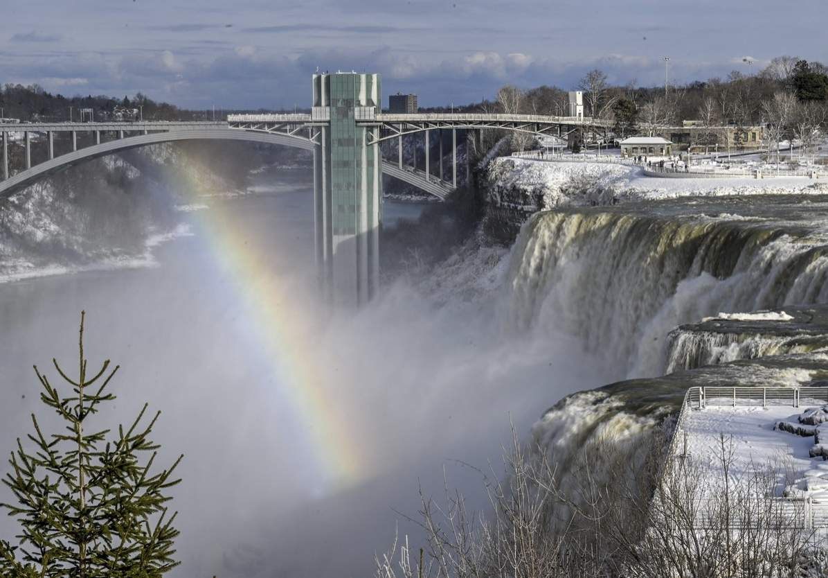 Turiștii au surprins acest fenomen uimitor ce a avut loc deasupra Cascadei Niagara. Un curcubeu s-a arătat peste straturile de gheață.