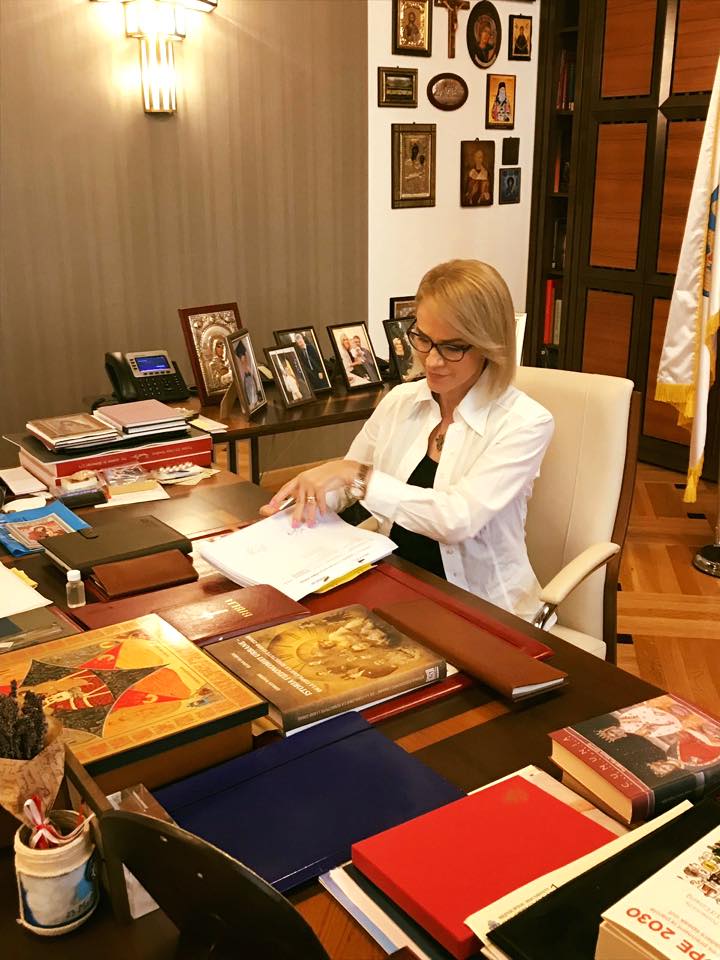 Dintr-o fotografie se vede că Gabriela Firea are 17 icoane şi o Biblie în biroul de la Primărie.