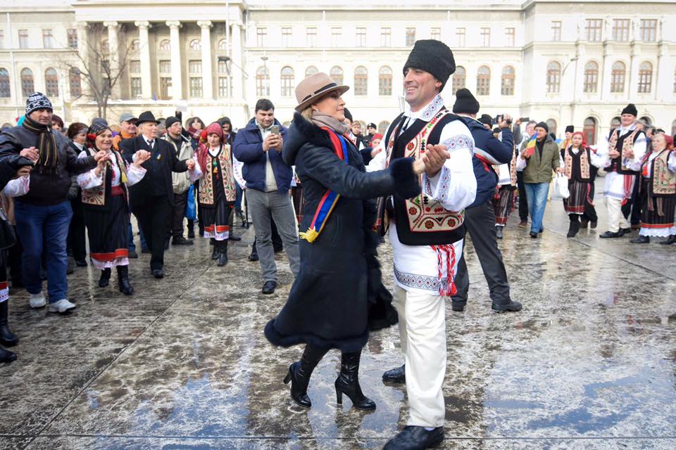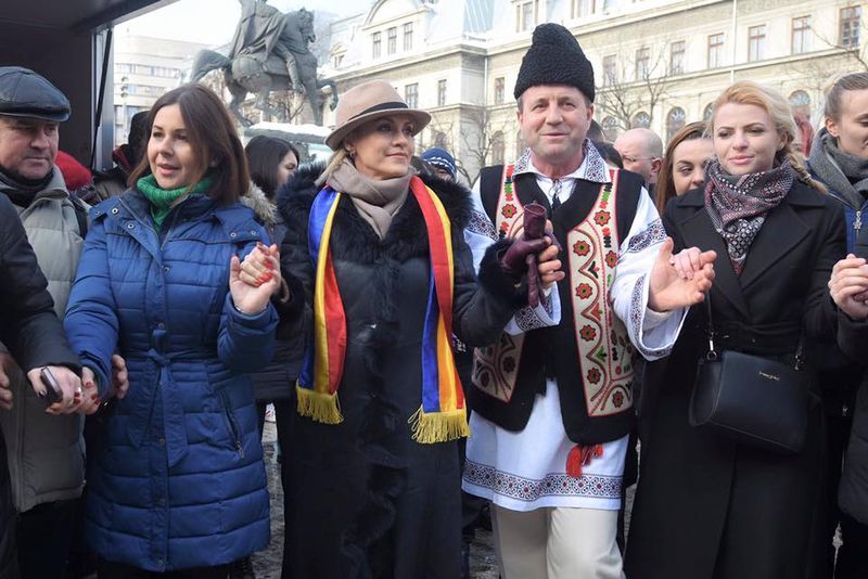 4 din 5 | Gabriela Firea s-a prins in hora cu dansatorii. Aproximativ 100 de oameni la manifestarile de Ziua Unirii din Piata Universitatii din Capitala
